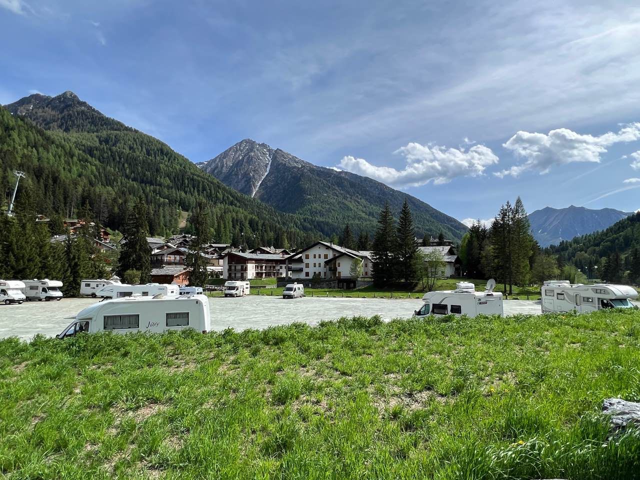 In centro al paese, in ottima posizione, ideale per chi va a sciare. Peccato che in inverno a causa della neve diventa molto fangoso. Nessun servizio per camper service.