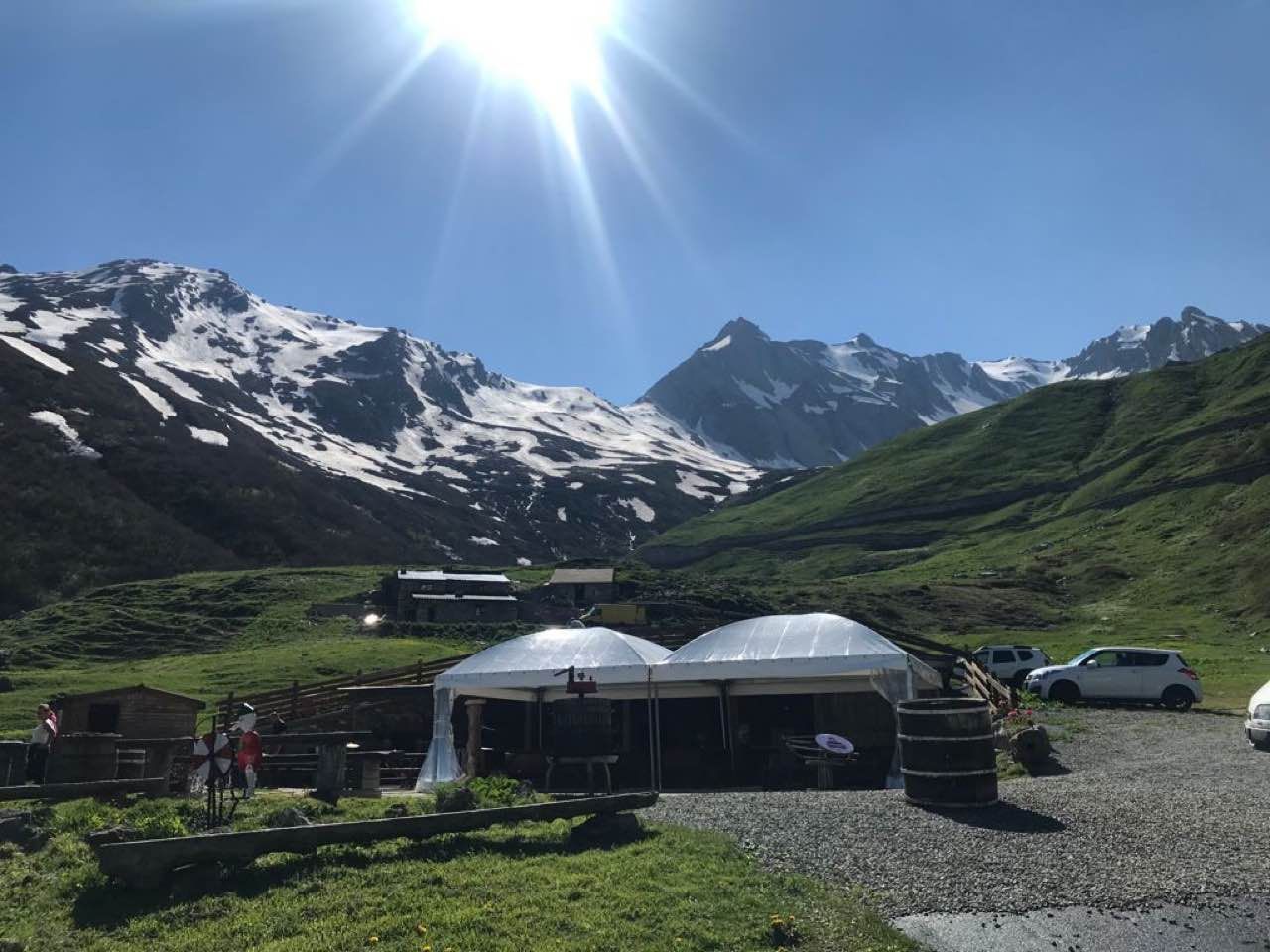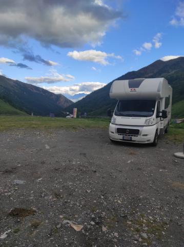 Ampio parcheggio della malga senza servizi, poco sotto il passo del Gran San Bernardo, con vista panoramica e punto ristoro con specialità tipiche del territorio (polenta, funghi, taglieri salumi e formaggi, birra, ecc.).