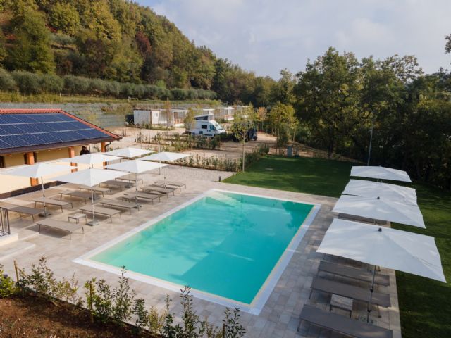 A disposizione dei clienti una piscina depurata al sale, terrazzo solarium attrezzato e camper service.