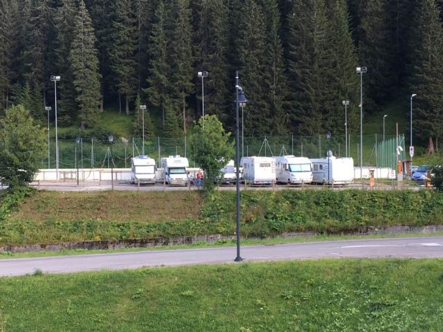 Vicina al centro del paese, raggiungibile a piedi, area comunale automatizzata con carico,/scarico, torrette per la corrente, toilette.