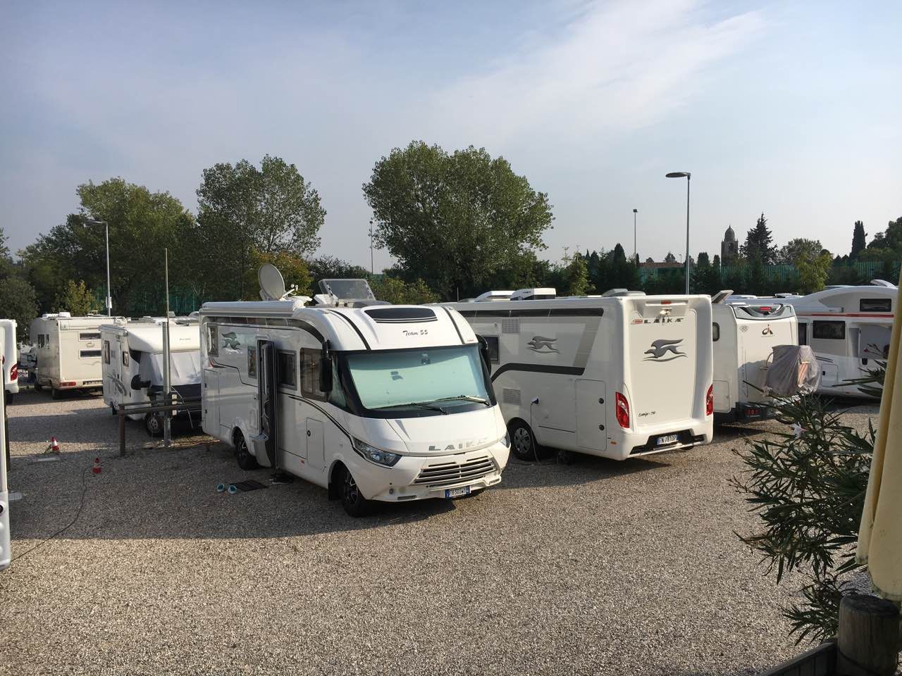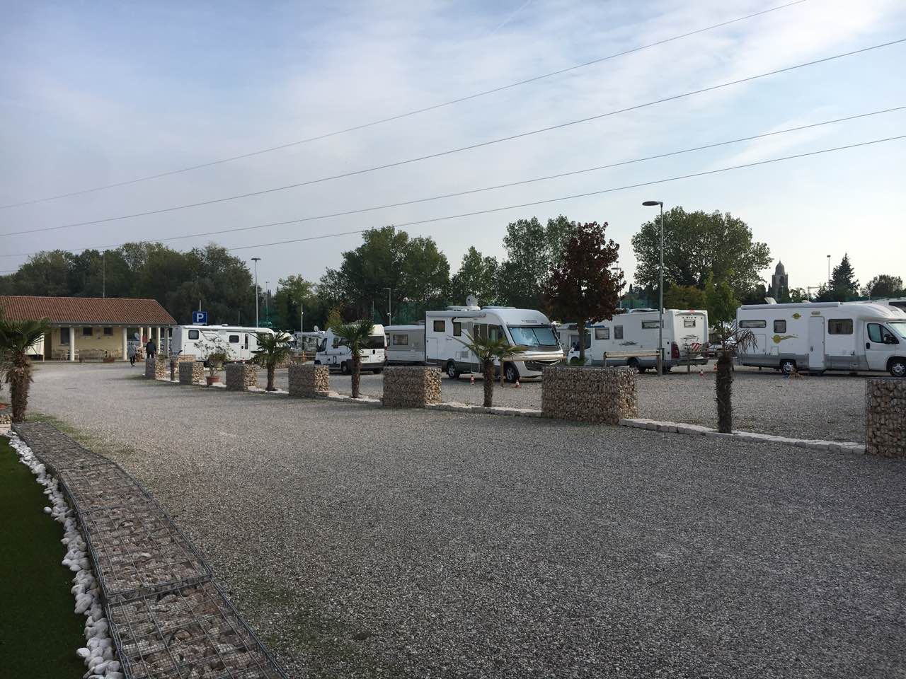 Buona posizione per Sirmione e Desenzano. Ottimi servizi, personale cortese e disponibile. Area sorvegliata e delimitata con cancello. 25 euro 24/h. Assolutamente consigliato!
