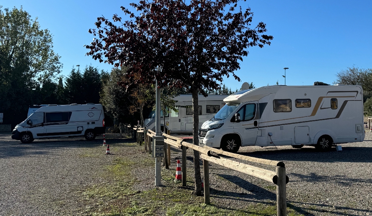 Area sosta ben tenuta e ordinata, stalli di ampie dimensioni che permettono anche l'apertura del tendalino. Alcuni stalli sono leggermente in pendenza ma con i cunei si risolve tutto. Gestore cordiale e ospitale, e non da meno i pelosi sono accettati, senza storie.