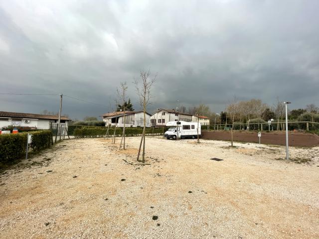 Area di sosta completa di carico/scarico, e corrente alla piazzola. Possibilità di servizi igienici e docce. Gardaland raggiungibile a piedi. Se vogliamo trovare dei difetti scarsa ombra e spazi un po' stretti per i camper più grandi.