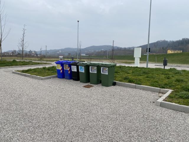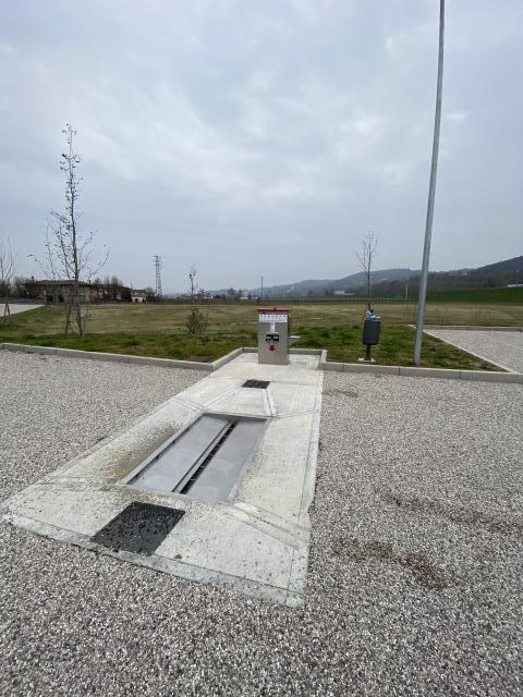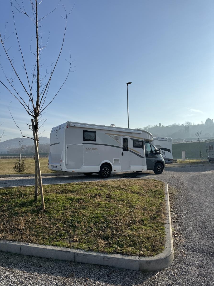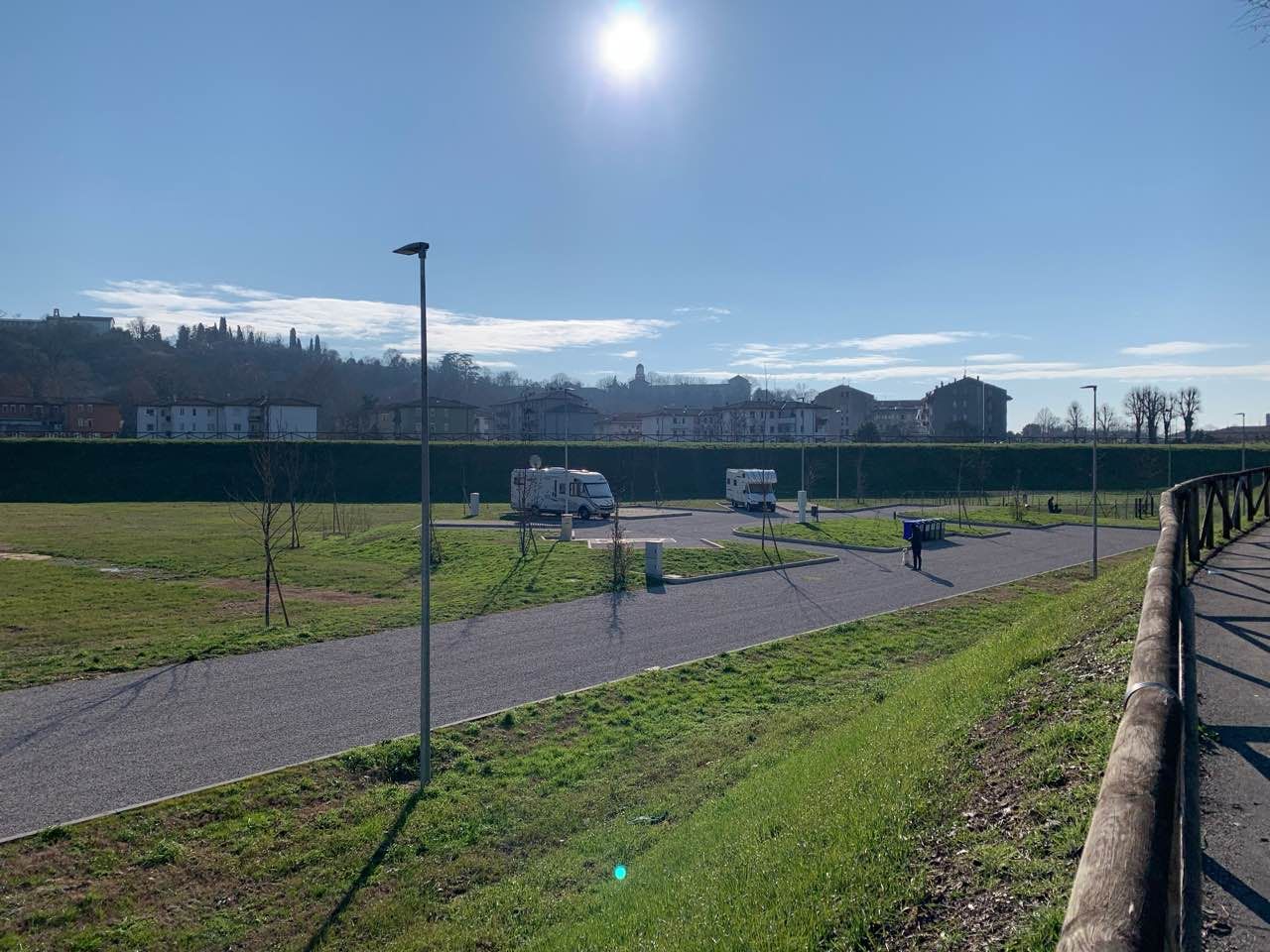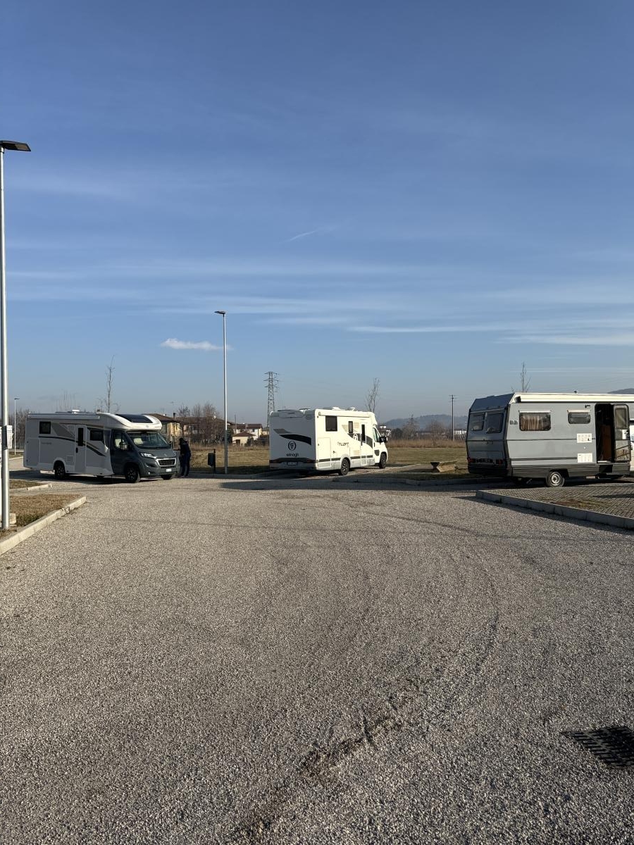 Area sosta camper videosorvegliata, con 5 stalli per veicoli di max 8 metri, a 700 m dal centro, vicina a zona verde e parco sgambamento cani.