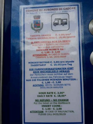 Caro, in pendenza, senza servizi. Sconsiglio a chiunque la sosta non solo in questo punto sosta ma in generale nel comune di Auronzo. Sono decine i casi di multe immotivate da parte della polizia locale. Camperisti indesiderati e non tollerati.