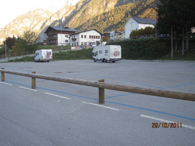 Area sosta comoda per Fun Bob e Parco Avventura, circa 2 km dal centro di Auronzo, carico e scarico gratuito per tutti anche per chi non sosta, prezzo 20 euro per 24 ore o 3 euro l’ora (fatto apposta per pagare la sosta notturna poiché subito sotto il parcheggio che di giorno è gratuito è proibito dopo le 23),mancanza di corrente elettrica che a mio avviso darebbe quel qualcosa in più che manca.