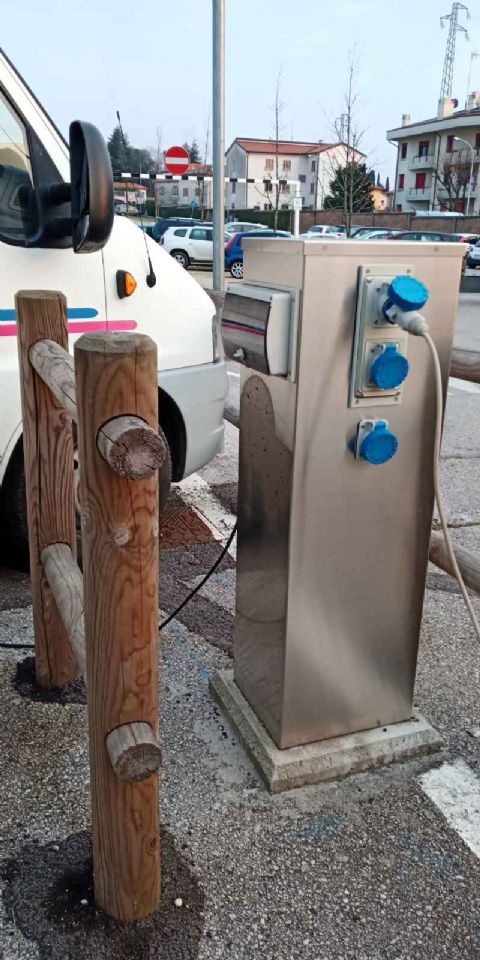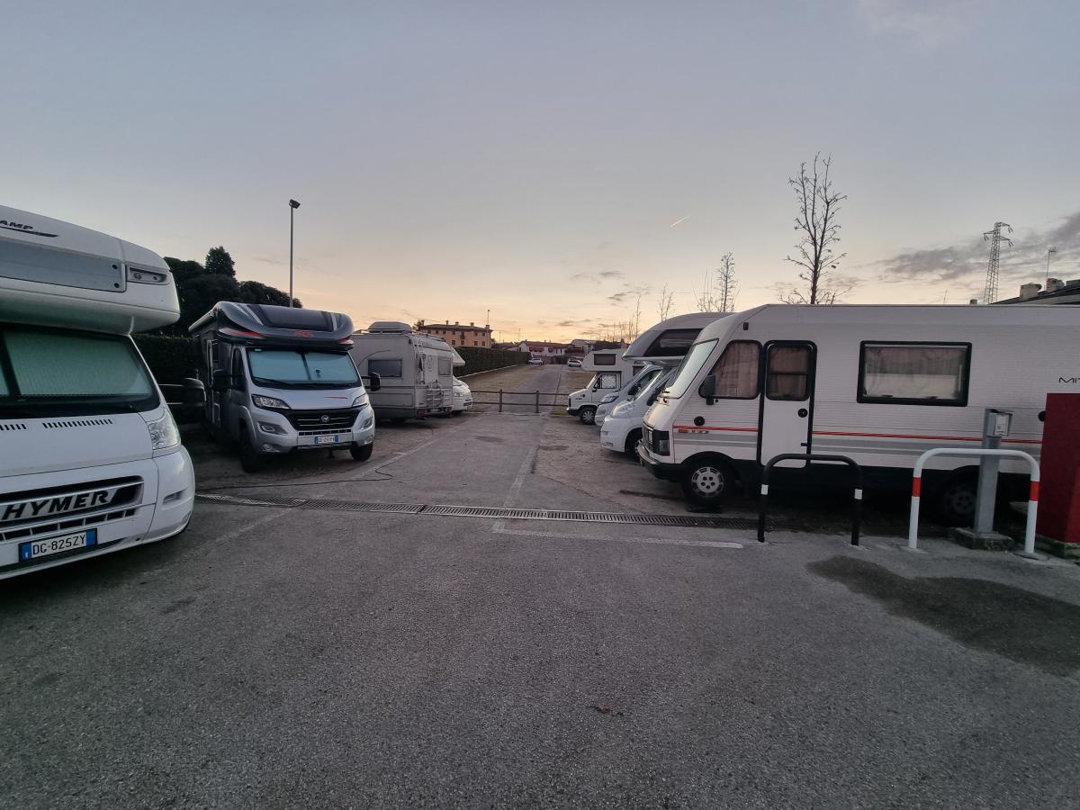 Parcheggio con acqua, scarico e corrente. Un po' rumoroso la notte dovuto a vicinanza a strada trafficata, su un lato confina con parcheggio auto e bus navetta per il centro. Comodissimo per visitare la bella Bassano del Grappa.