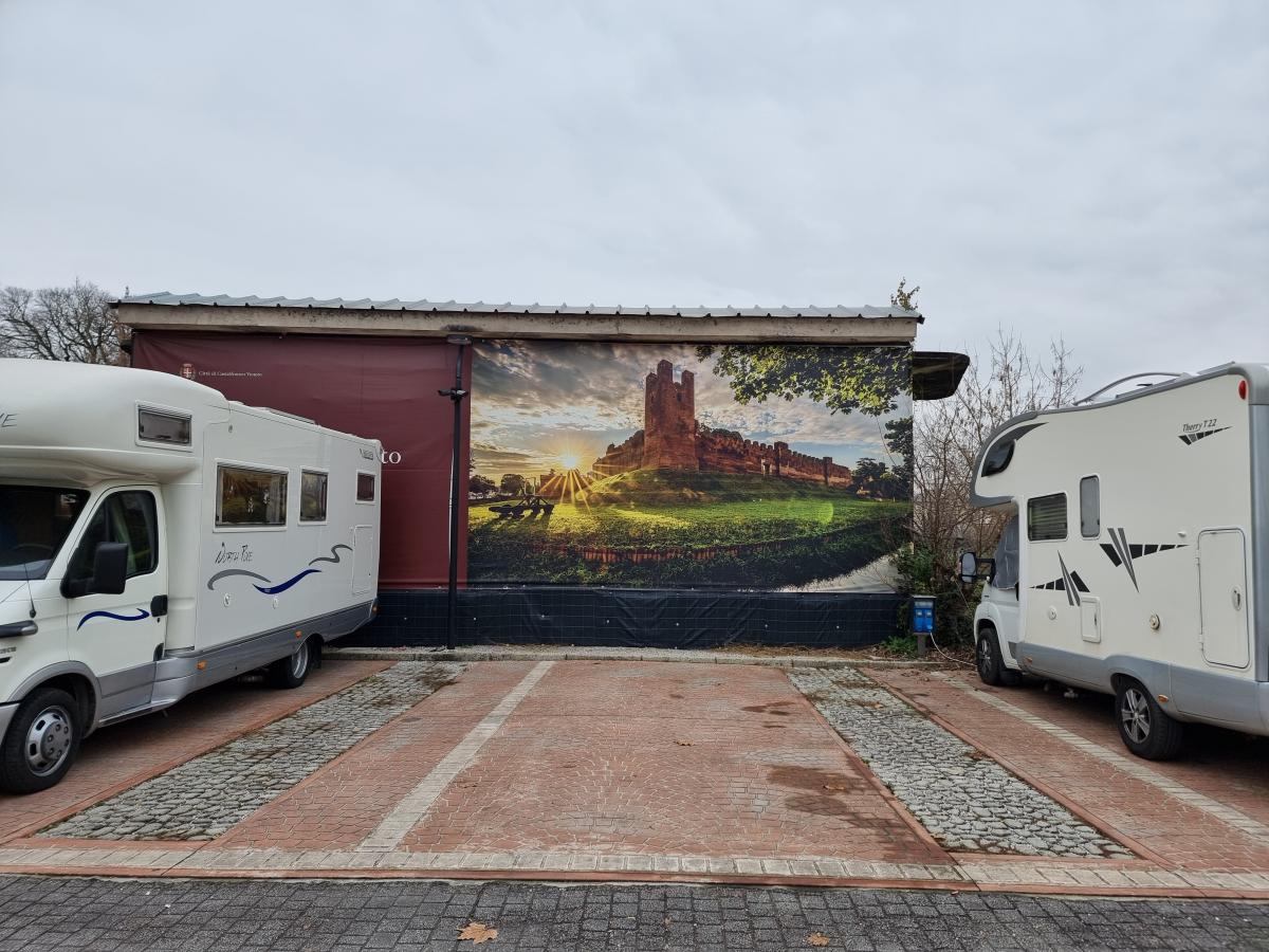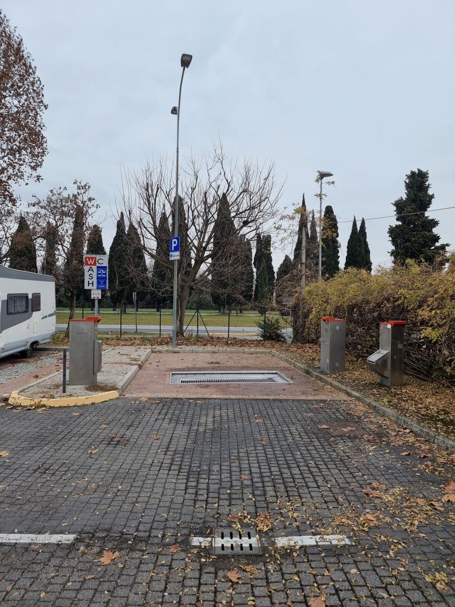 8 posti in piano, su pavimento cubettato, ogni stallo ha il suo attacco elettrico incluso nel costo. Comodo per il pernottamento, la strade adiacenti sono un tantino rumorose. Possibilità di carico e scarico tramite circuito WC-Wash, costo a parte. Illuminato, videosorvegliato e chiuso da sbarre. Vicino all’area presente supermercato Coop e bar (circa 1 minuto a piedi).