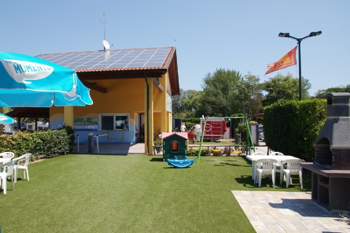 A pochi passi dal mare, in un tratto di costa veneta, all'inizio della pineta, vicino alla zona pedonale, area con piazzole standard (40 mq), medie (48 mq) o maxi (54 mq) tutte con corrente elettrica, acqua e Wi-Fi, alcune anche con scarico acque nere. I servizi includono: camper service, due gruppi di sanitari con docce calde, WC, lavabi e lavelli per le stoviglie.
