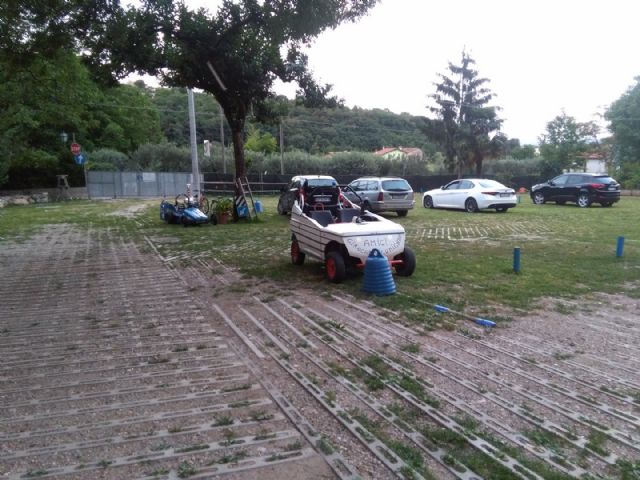 Immersa nel verde dei Colli Berici, area di sosta su erba, recintata, con carico/scarico e WC.