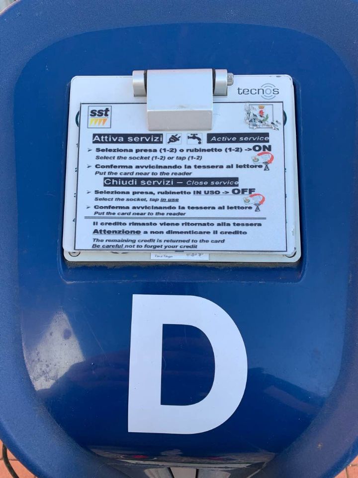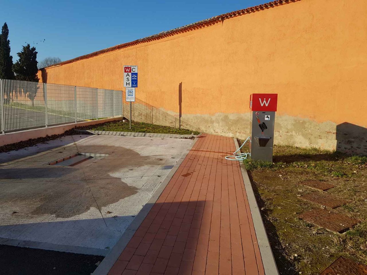 Sostato nella parte promiscua (auto e camper) abbastanza vicina al centro storico. Il parcometro è difettoso perché non permette la selezione auto/camper, ho messo 3 euro ed esposto la ricevuta. Al mio ritorno dopo circa 3 ore trovo un bigliettino sul parabrezza con scritto che il mio ticket è riferito ad automobile. Chiamo due volte il numero verde ma la possibilità di selezionare il mezzo proprio non esiste, messi altri 3 euro. Spero non arrivi a casa la multa.