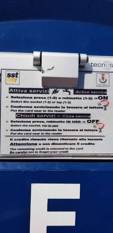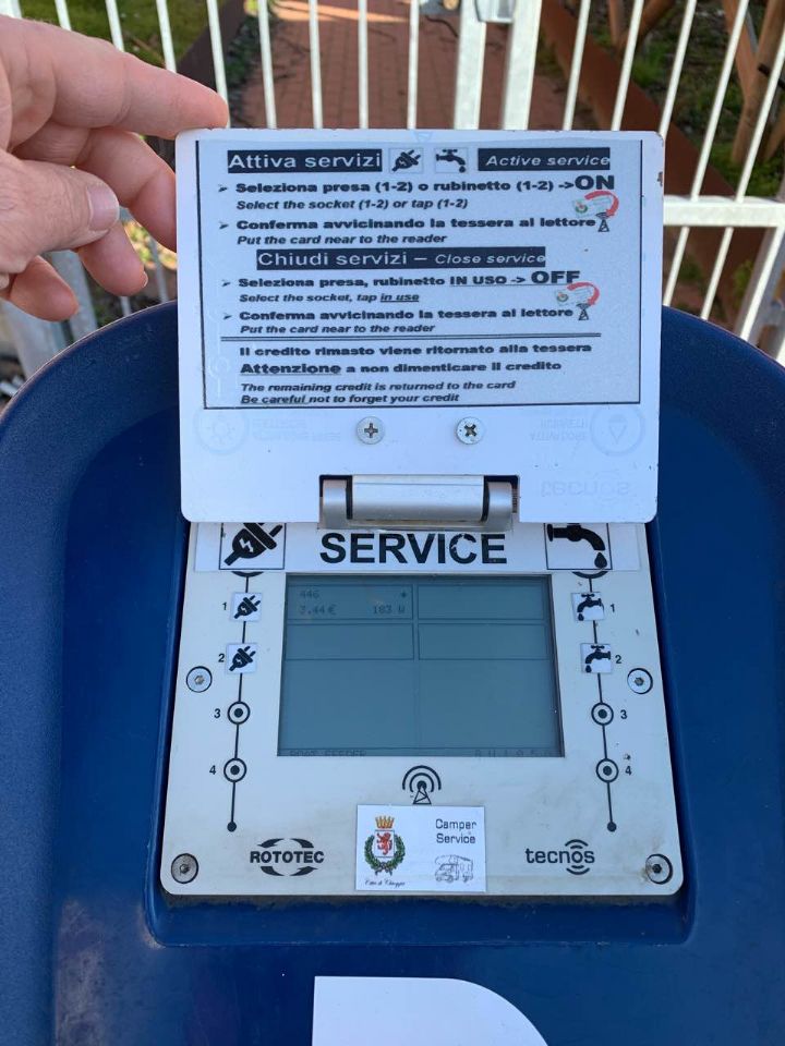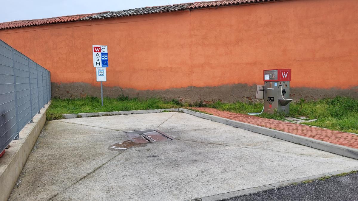 Area sosta mal tenuta: scarico cassetta fatiscente e carico acqua non funzionante, evidentemente da tempo. Inoltre, il pagamento con carte non può essere effettuato perché il lettore è guasto, ho dovuto sostare appena fuori dove c’è il parcheggio auto. Adiacente c'è un deposito BUS rumoroso! Alle 3:00 di notte cominciano a partire scaldando il motore per svariati minuti (mai dormito). La sconsiglio, sostate altrove. Il pagamento è molto complicato, bisogna acquistare tessera e caricarla!