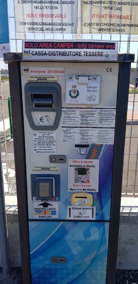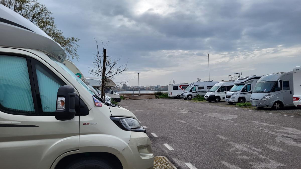 Comodo per visitare Chioggia anche a piedi. Sicuro, con allaccio elettrico (a pagamento a consumo), acqua e scarico serbatoi. Confermo che è un po' "cervellotico" il metodo di pagamento. Consigliato sopratutto entro le 48 ore, per via dello scatto sulla tariffa successivamente!