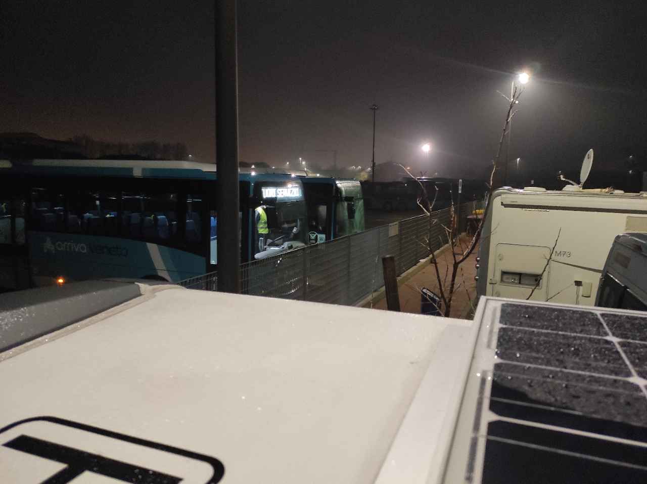Ha il grande vantaggio di essere vicina al centro. Confermo le più recenti recensioni. Pagamento che va "studiato" bene subito all'ingresso per evitare sorprese. Caro, ma essendo in città ci può stare. In effetti i pullman iniziano alle 5 ad accendere i motori; se il camper è ben coibentato ce la si può fare.