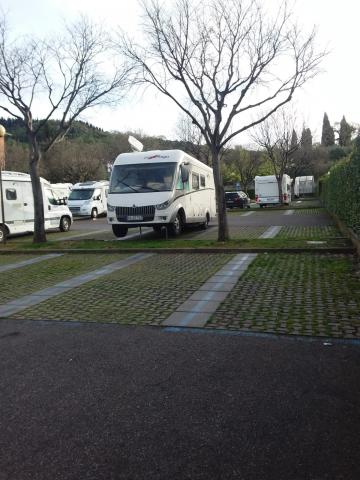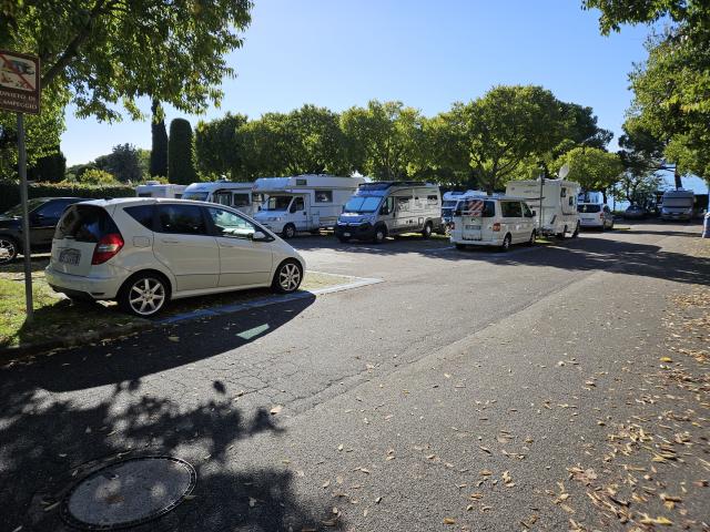 Custodita, dispone di 10 posti per camper, poco in piano su autobloccanti, parcometro carte credito per pagamento, CS con pozzetto carrabile, fontana carico acqua. Sosta notturna consentita, no campeggio.