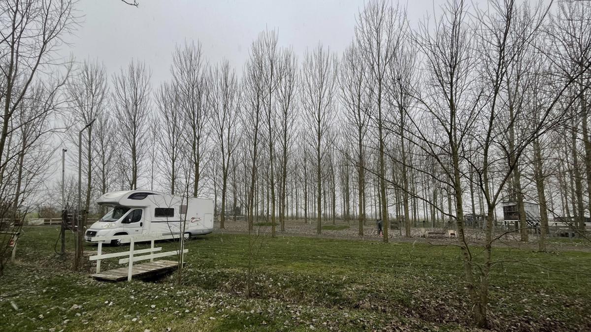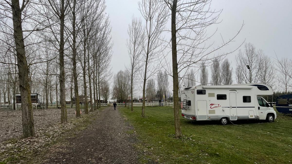 Nelle vicinanze del fiume Po, interna al maneggio, area sosta camper su terreno erboso con servizio di scarico, elettricità, servizi igienici, doccia, area BBQ.
