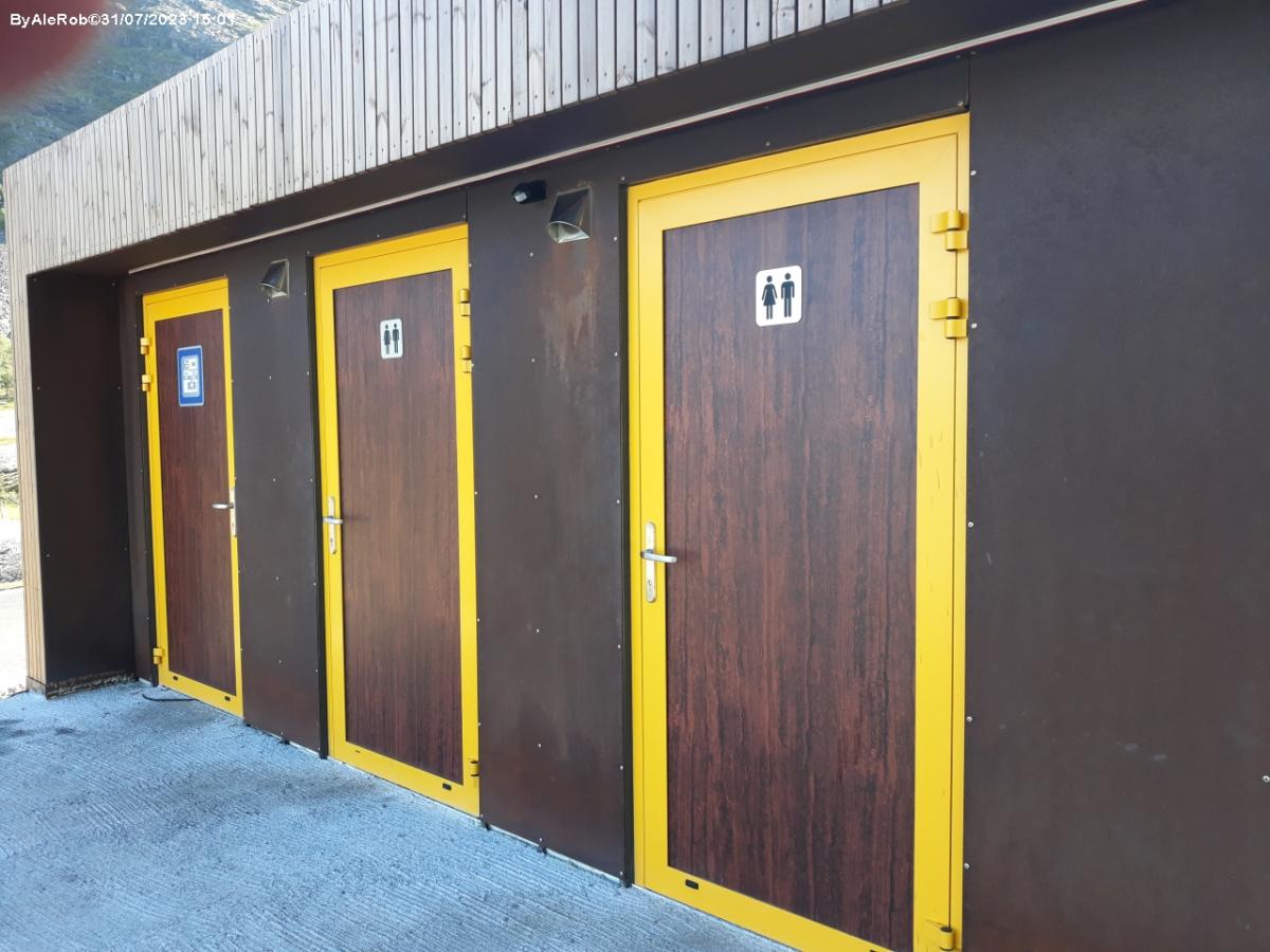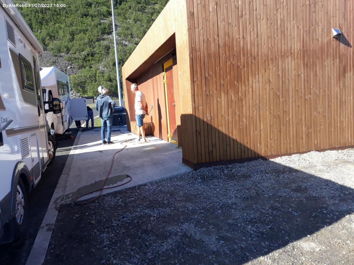 Blocco servizi, colonnina automatica per lo scarico e pulizia della cassetta, rifornimento acqua potabile, tavoli, bracieri e una parte del parcheggio riservata per il pernottamento.
