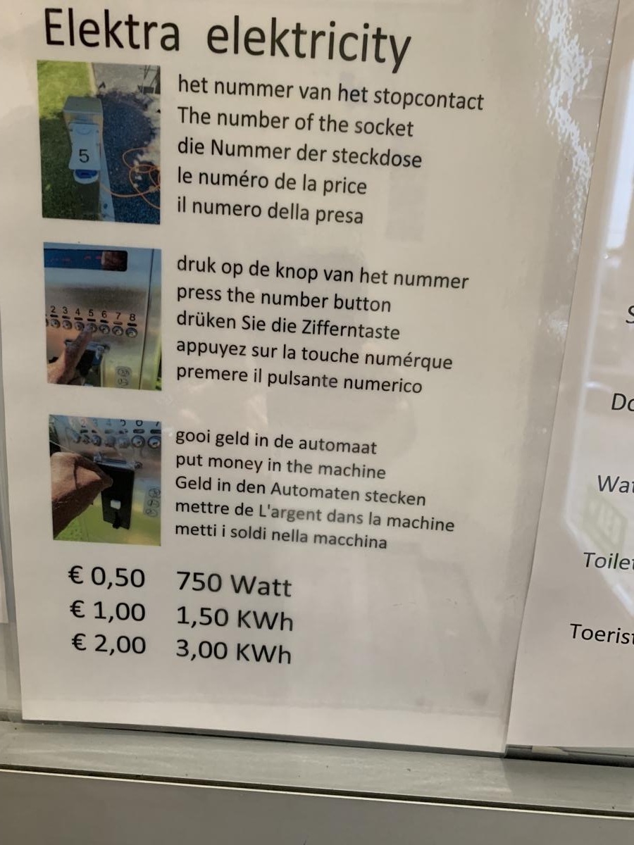 Ottima area per la visita dei mulini e comoda per Rotterdam, raggiungibile tramite battello (20 min a piedi al porto). Confermo i prezzi, elettricità 1 €/1,8 KW/h.