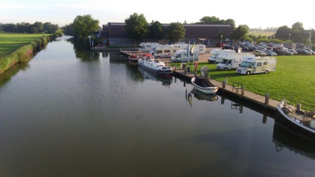 A sud-ovest di Utrecht, area pianeggiante per camper, all'interno di struttura portuale turistica fluviale.