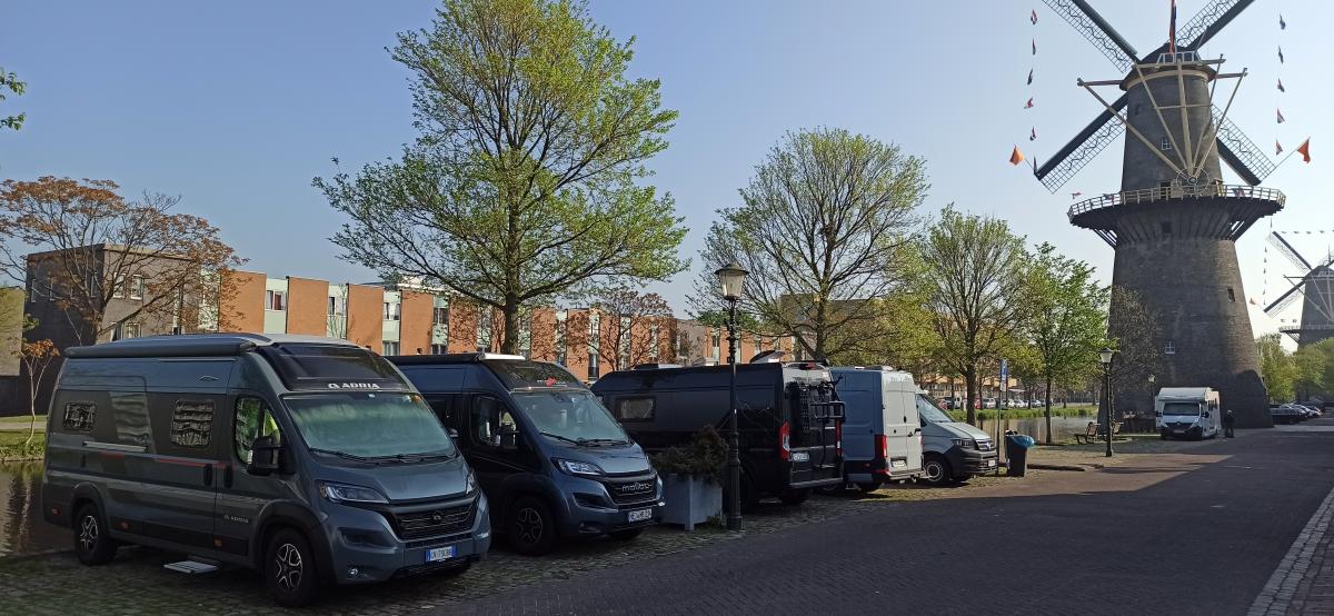 A 800 m dal centro, davanti al canale e accanto a due mulini, punto sosta a pagamento con 9 stalli per camper, senza servizi.