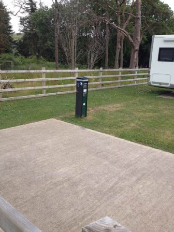 Area camper vicino a Waterfoot, con 40 stalli per camper, prese corrente (gratuita per 24h), docce, bagno, carico/scarico, piccolo bar adiacente. Bisogna chiamare il numero telefonico per ricevere il codice per l'apertura della sbarra.