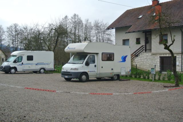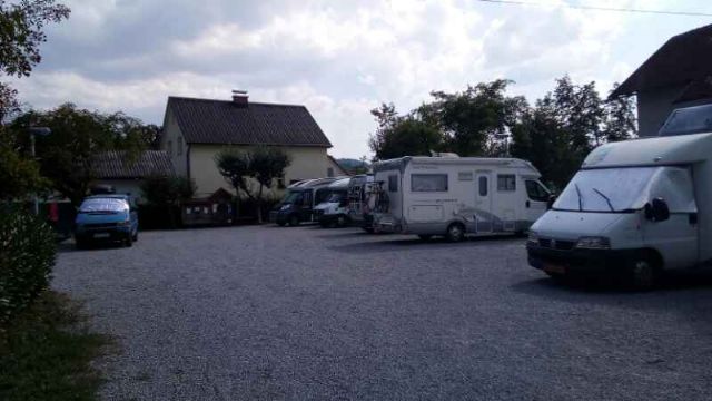 A circa 8 km dal centro di Lubiana, area sosta a pagamento nel parcheggio dell'adiacente taverna, 20 posti, illuminato, allaccio elettrico e camper service. A disposizione bagno e doccia calda a pagamento. Sosta gratuita se si consuma un pasto (pranzo o cena) in taverna.