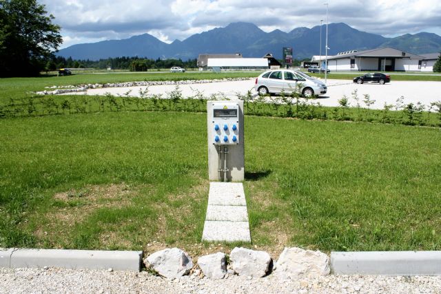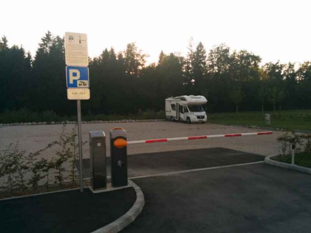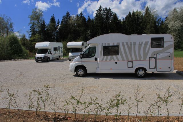 Vicino all'autostrada (A2 Ljubljana-tunnel Karavanke - uscita 9 Kranj-est), parcheggio con 14 piazzole su fondo di ghiaia, video sorvegliato, può ospitare camper fino a 12 m, dispone di acqua potabile, elettricità, internet gratuito, scarico delle acque reflue, scarico WC chimico e delle acque nere.