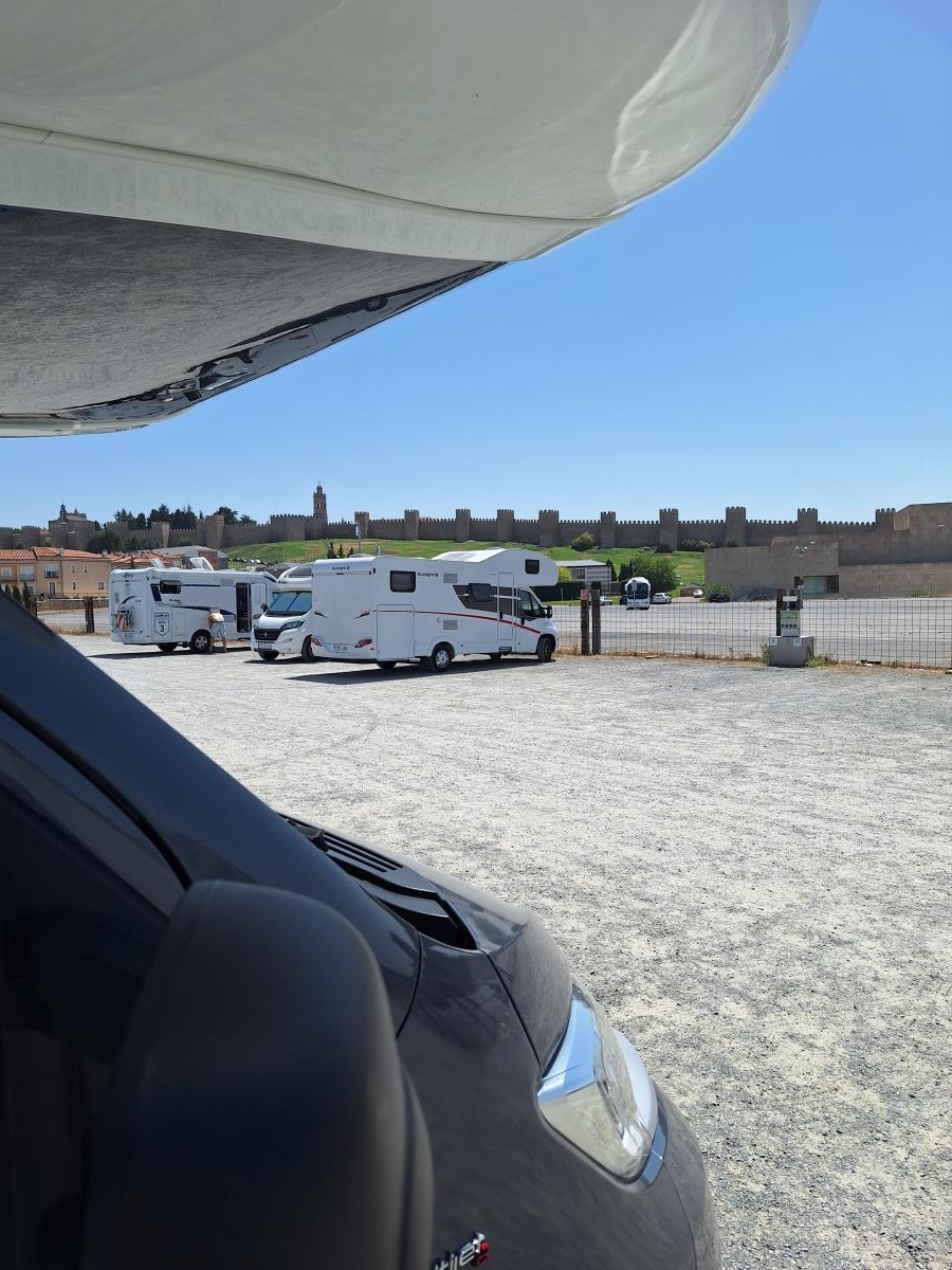 Ottima area camper, molto sicura (codice per entrare e uscire sia a piedi che con camper), con servizi igienici, doccia, camper service gratuito, piccolo store. Niente ombra, gli alberi devono ancora crescere! Proprio accanto c'è un grande parcheggio libero nel quale non è permesso il parcheggio ai camper (ma c'erano comunque). Molto economico, 7 euro per tutto il giorno e si può anche pernottare. Si trova proprio sotto le mura della città. Consigliatissimo.
