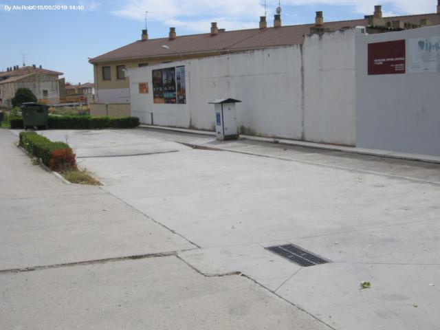 A 200 m dal centro e adiacente all'ingresso per le Grotte di Arguedas, area sosta pianeggiante, non ombreggiata con circa 30 posti camper su sterrato, postazione carico acqua e scarico grigie e WC.