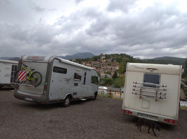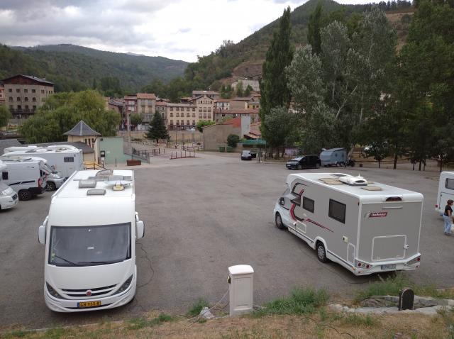In città, ampio parcheggio riservato ai camper, sulla N 260, 24 Km a est di La Seu d'Urgell, con servizi di scarico cassette e acque grigie, elettricità, fontanella acqua potabile, bagno, doccia, lavandino, tavoli picnic. Pagamento con bancomat o cellulare.