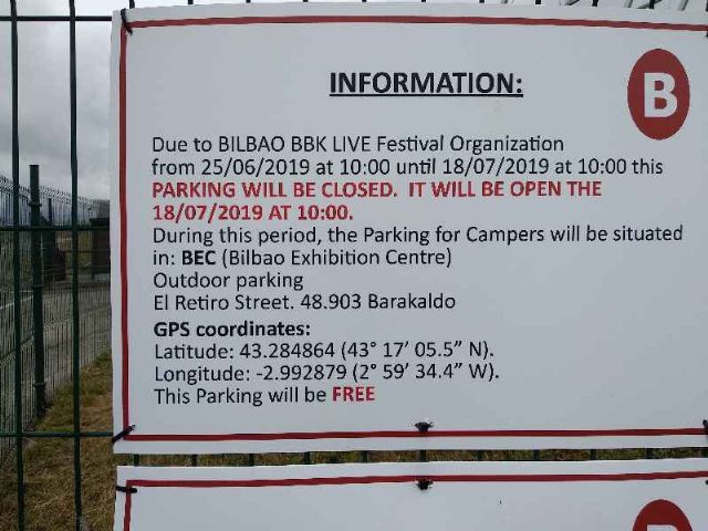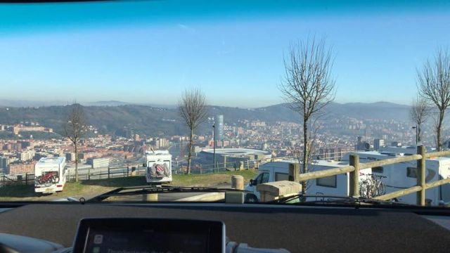 Bella con 2 postazioni CS. Confermata tariffa. Bella vista su Bilbao. Comoda anche per centro con bus n 58, (costo ticket 1,25 a corsa). Nessun problema per mezzi di notevoli dimensioni. In alternativa, di fronte, area sosta gratuita senza servizi