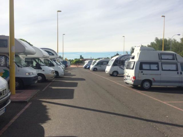Presso il palazzo della Giunta Regionale, piazzale con 20 posti su asfalto riservati ai camper, in centro città, sulle sponde del fiume. Possibile il pernottamento.