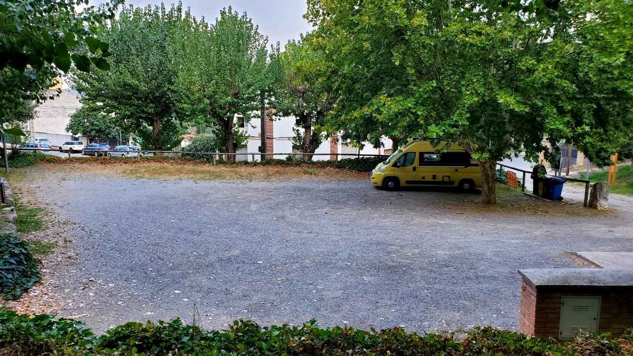 A circa 500 m dal centro, area segnalata immersa in un parco naturalistico, con 7/8 posti su ghiaia, carico acqua e scarico grigie-nere gratuiti, area raccolta differenziata, giochi bimbi e area picnic.