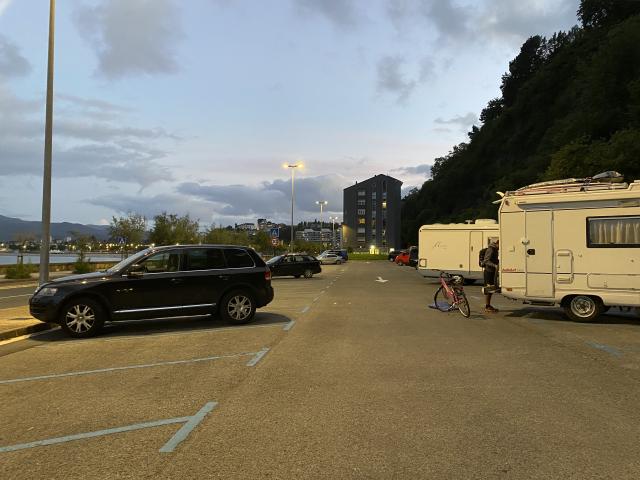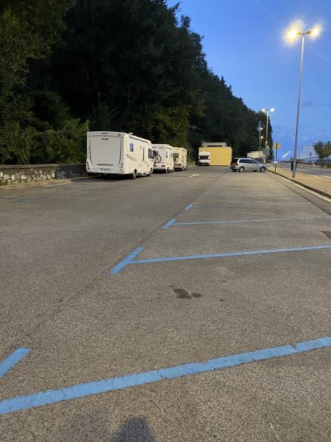 Abbiamo dormito qui la notte di domenica 6 agosto 2023, anche se a bordo strada vi era poco rumore, eravamo circa 8 camper. Ottima soluzione quando il campeggio cittadino, che è inerpicato alla fine di una salita notevole, era full come nel nostro caso. Vicino alle spiagge c'era un altro grandissimo parcheggio a € 1,30/ora, incluse le ore notturne. No CS, no servizi, solo parcheggio.