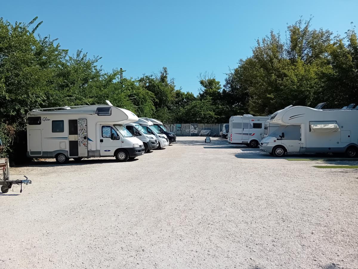 A 4 km dal centro, raggiungibile con ciclabile, parcheggio misto auto con interno autonoleggio, chiuso da un cancello. Servizio di carico e scarico, acqua e cassetta WC chimico.