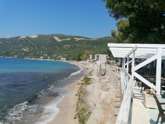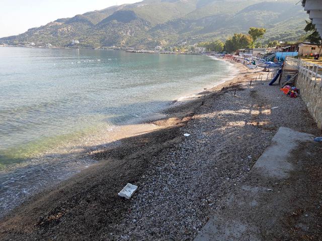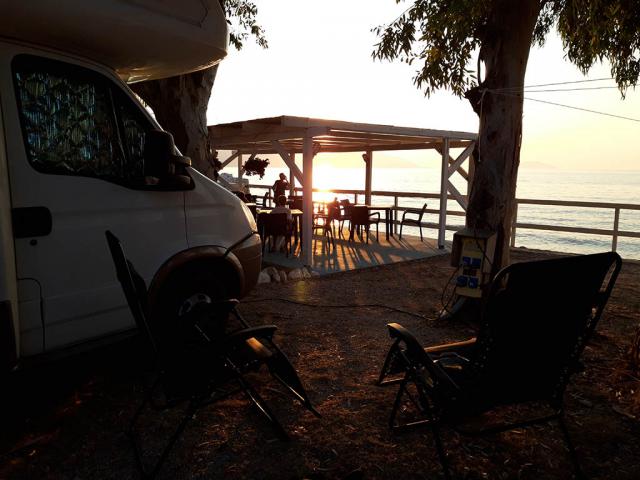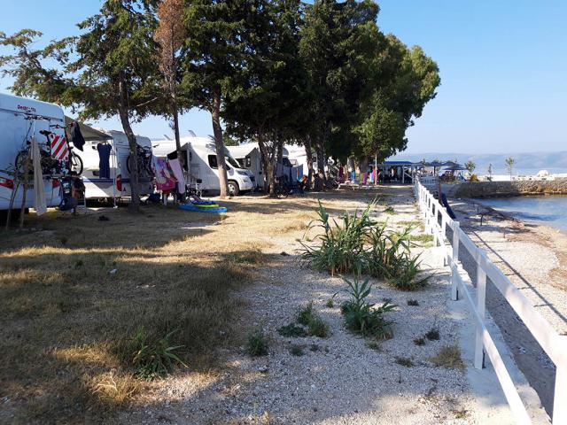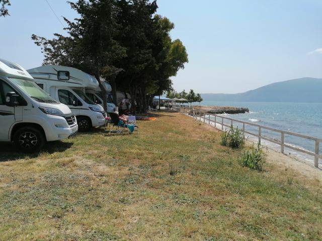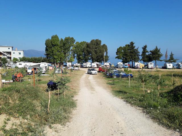 Mini campeggio fronte al mare con spiaggia di ciottoli libera o attrezzata, piazzole non delimitate non tutte servite da allaccio elettrico