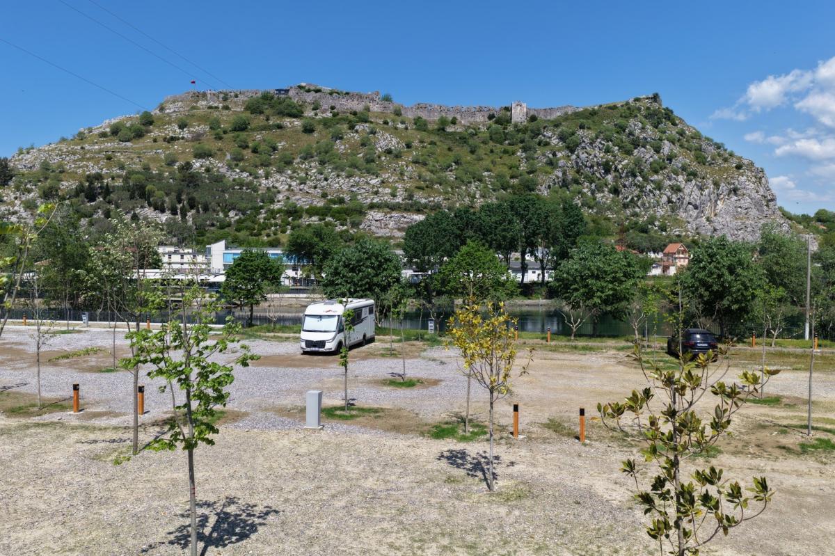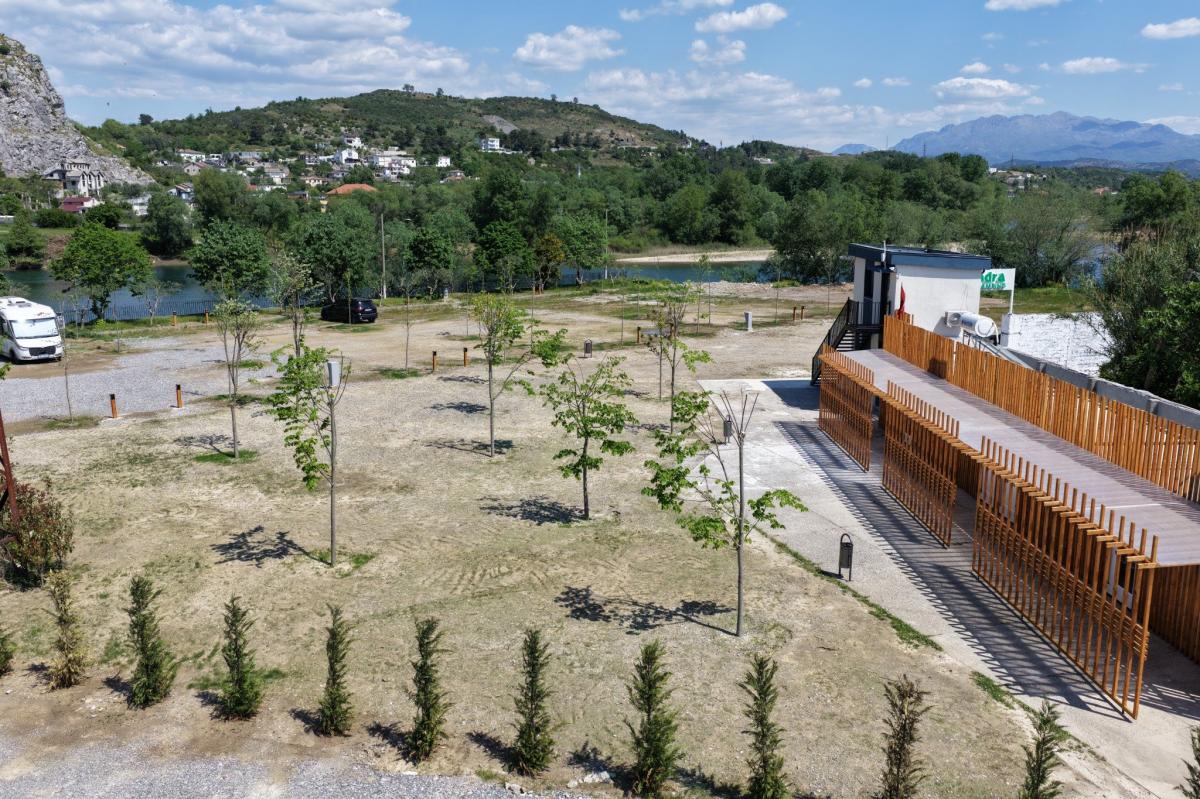 Alle pendici del castello di Rozafa, a circa 3,5 km dal centro, campeggio videosorvegliato e presidiato, a pagamento con carte o contanti, con accesso diretto alla spiaggia del fiume.