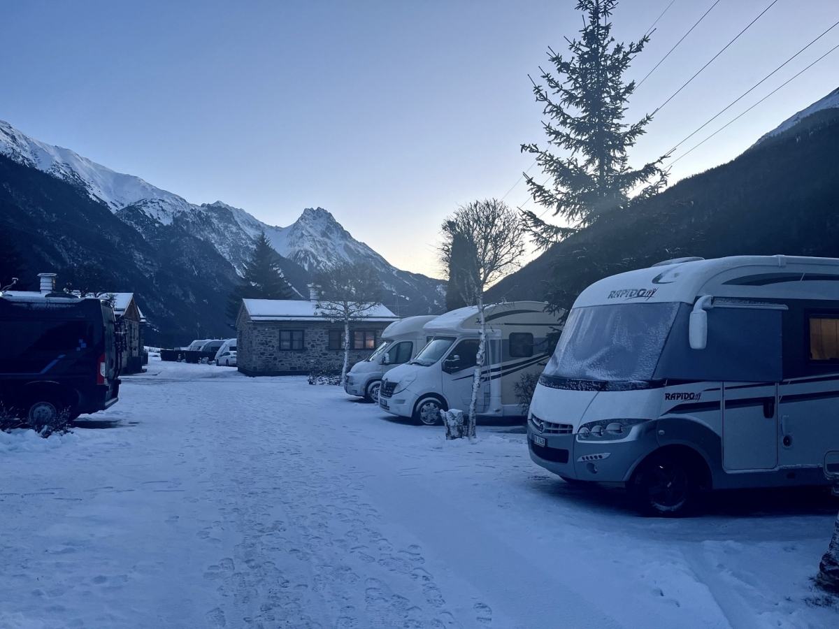 Servizi sanitari completi e riscaldati in inverno, ampie docce, bagni anche privati, sala/cucina comune, distributori automatici di bevande, deposito sci, lavatrice e asciugatrice a gettoni, locale per l'asciugatura, area picnic, smaltimento delle acque grigie (limitato in inverno), scarico cassetta WC chimico.