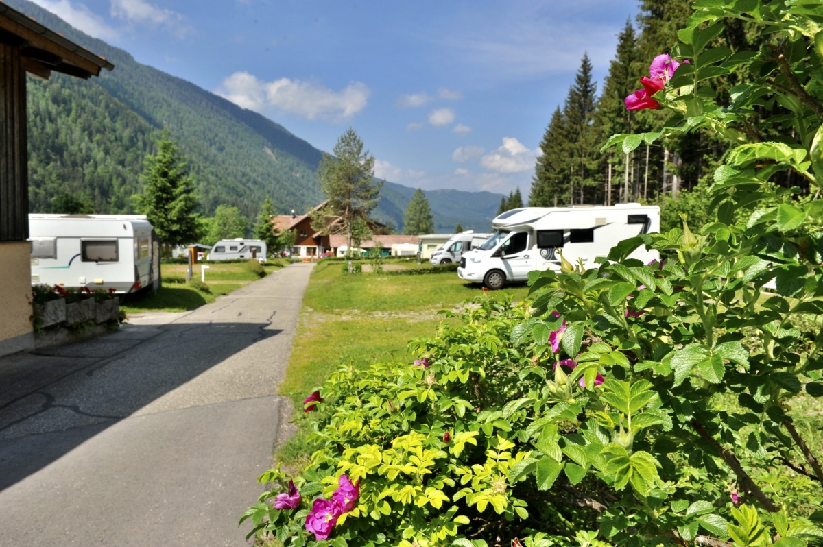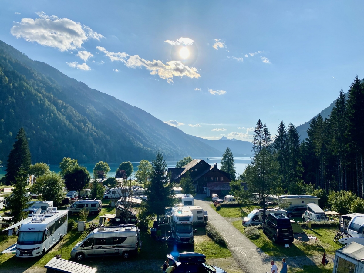 Lontano dal centro, immerso nel Parco Naturale di Weissensee e affacciato sul lago omonimo il piccolo campeggio � costituito da una spiaggia riservata, due appartamenti e circa 130 piazzole disposte su terrazzamenti di cui 27 per camper con. allaccio elettrico, alcune anche con carico acqua e carico grigie.