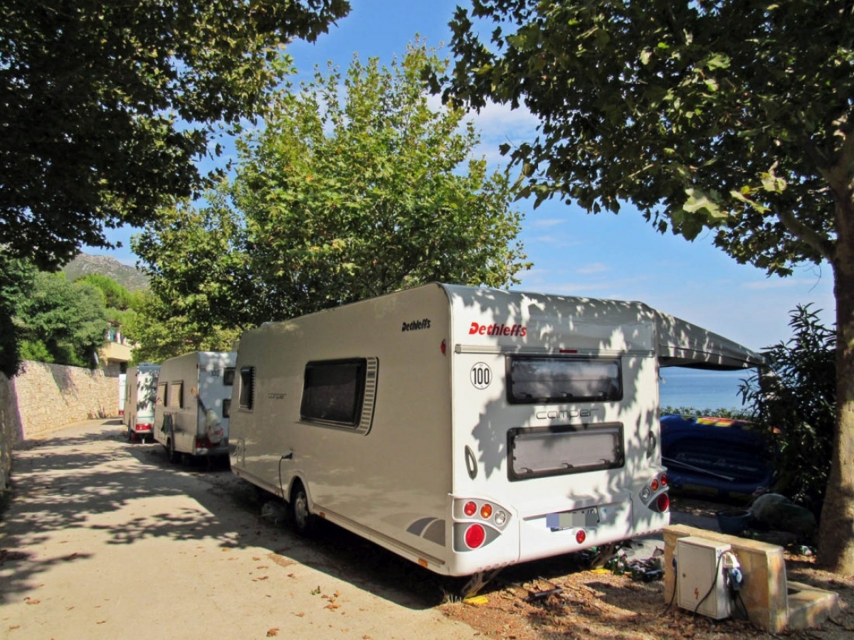 A circa 2,5 km dal centro, campeggio terrazzato direttamente sul mare con spiaggia attrezzata con docce e bar, dotato di case mobili e 150 piazzole di varie dimensioni con allaccio idrico ed elettrico.