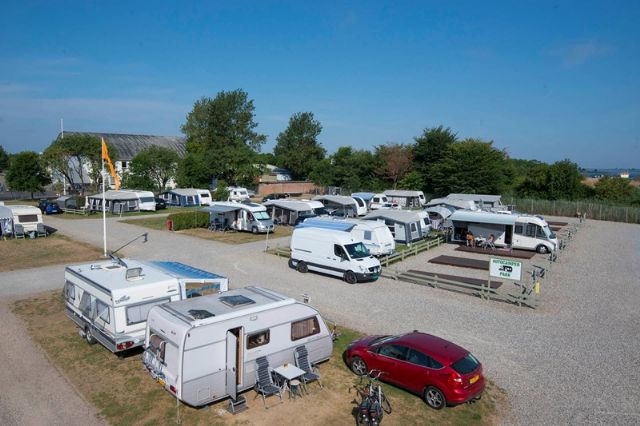 A 2 km dalla città e a 200 m dalla spiaggia Limfjord, struttura con cabine di varie tipologie e monolocali in affitto, e 120 piazzole su prato con allaccio elettrico.