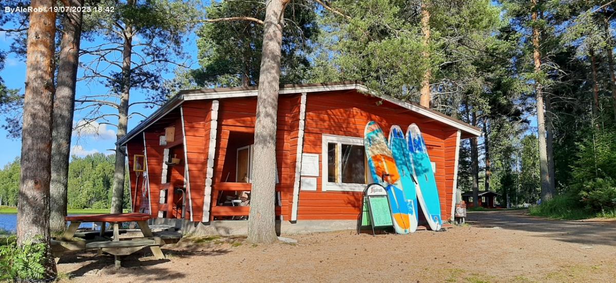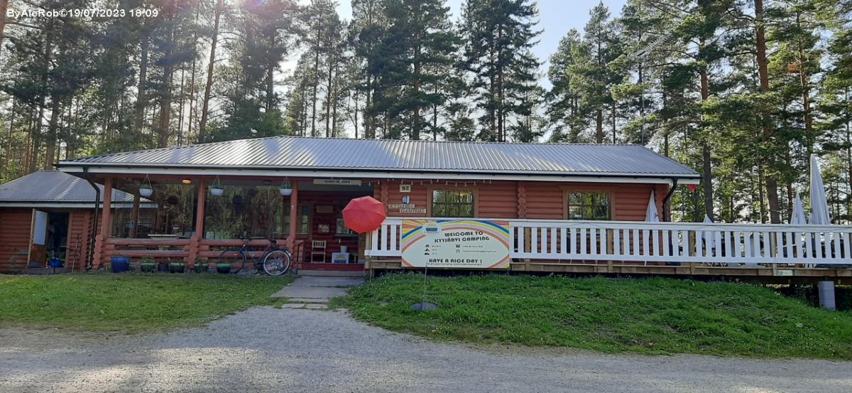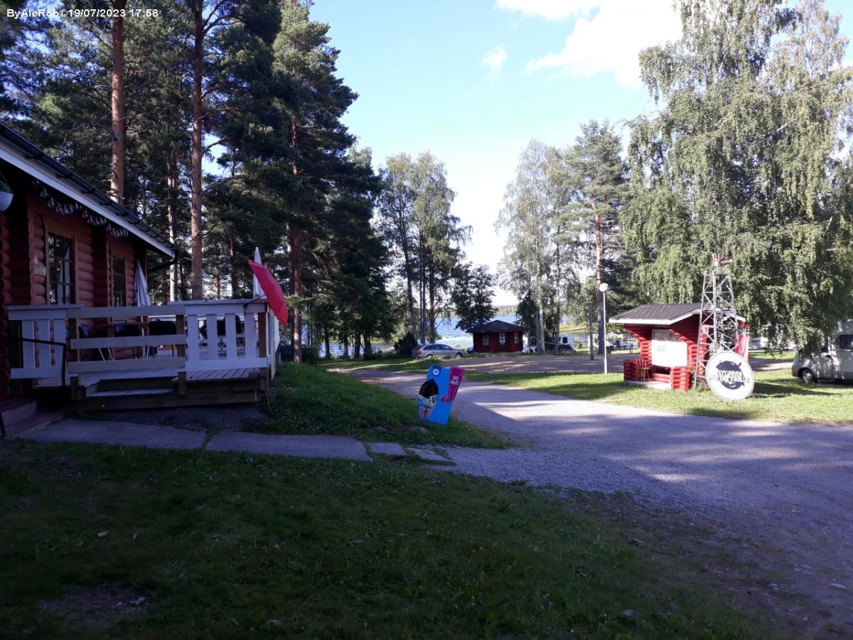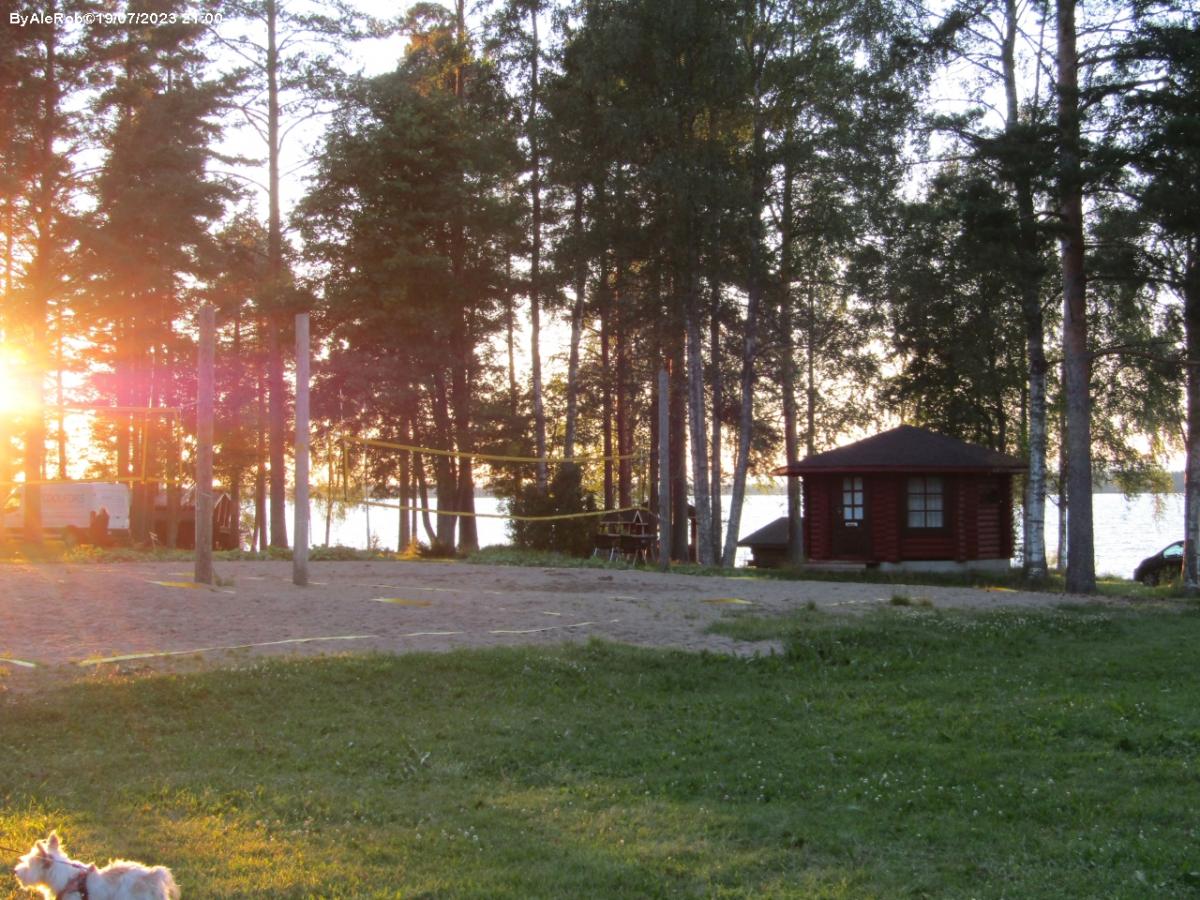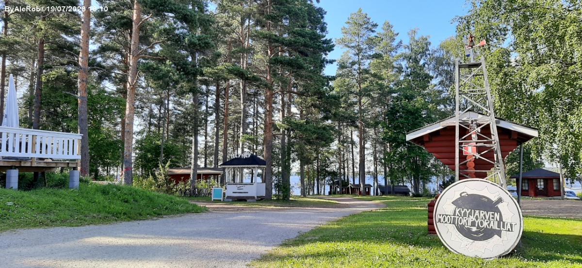 In riva al lago Kyyjarvi, campeggio dispone di piazzole su terreno erboso con servizi: allaccio elettrico, bagni, docce, saune, possibilità di pesca. Scarico cassette nei bagni degli uomini. No scarico grigie o nautico.