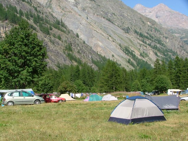 Piccolo campeggio naturale nel cuore del Parco Nazionale degli Ecrins con piazzole libere su prato, presente allacciamento elettrico, servizi igienici e docce (anche per disabili), lavelli per stoviglie.