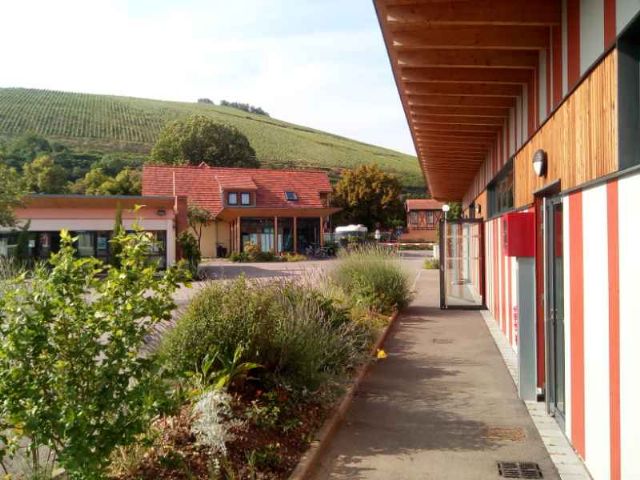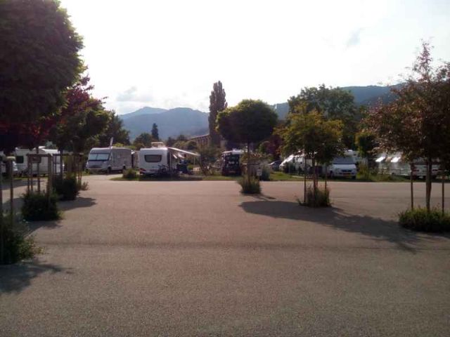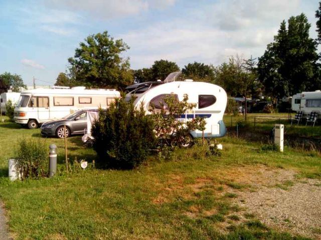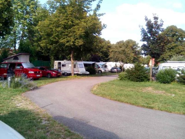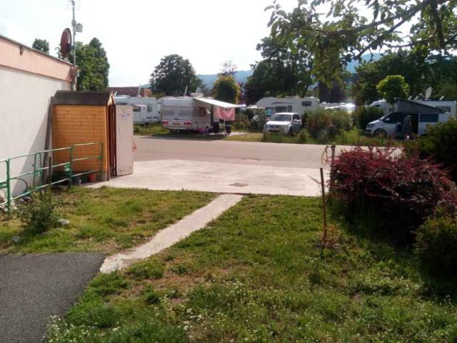 Nell'alto Reno, a 600 m dal centro, campeggio con vista panoramica sui vigneti, dotato di case mobili e 127 piazzole delimitate dotate di allaccio elettrico da 16A.