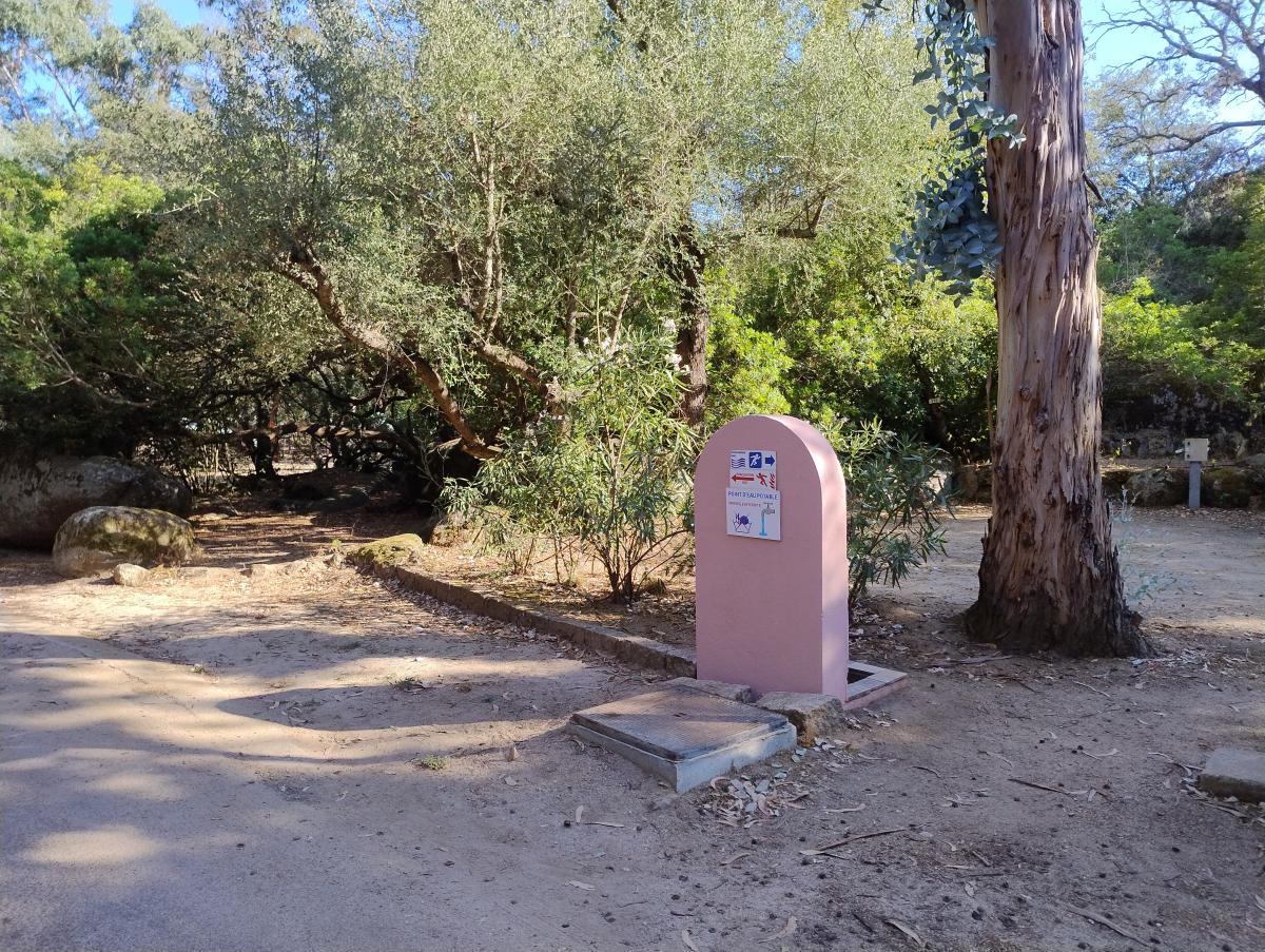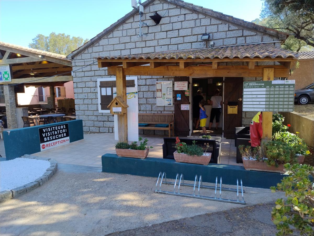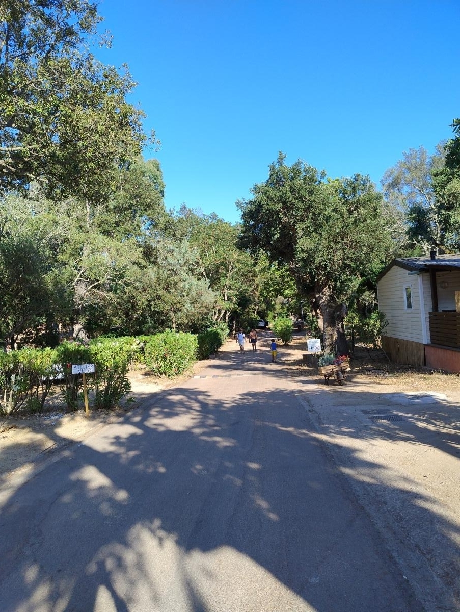 A10 minuti da Porto Vecchio, grande campeggio sul mare con piazzole di diverse dimensioni, alcune fronte mare per camper e caravan, su terra, ombreggiate naturalmente da piante.