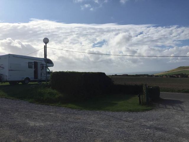 Piccolo camping su area naturale, terrazzato, in posizione panoramica con vista sul canale della Manica, a 1,5 km dal mare. Attrezzato per la sosta dei camper con camper service, attacchi elettricità e Wi-Fi. Dispone di 30 piazzole ampie su fondo erboso, con "guide" in ghiaia che garantiscono la trazione anche in caso di forte pioggia. Reception aperta fino alle 22:00. Animali ammessi, gratuiti. Pane e dolci per colazione su prenotazione.