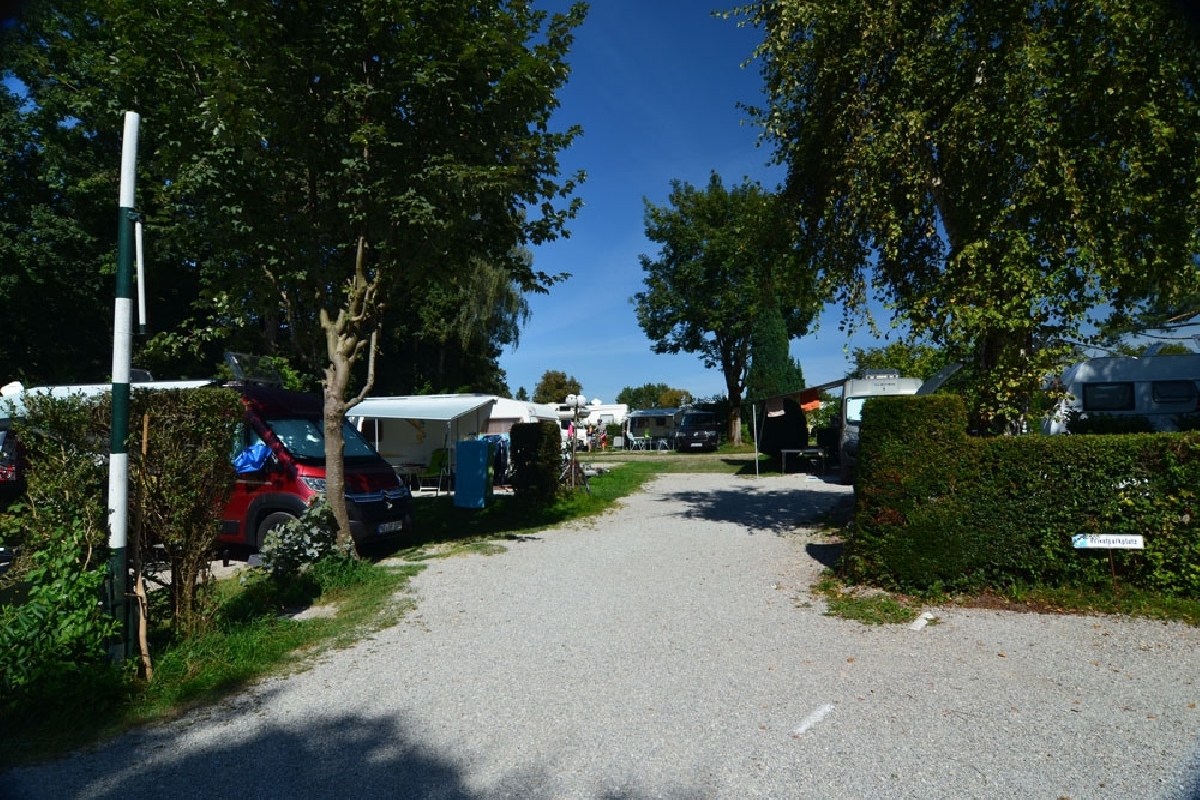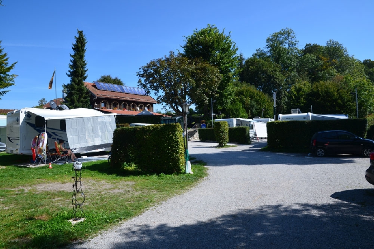 Immerso nei boschi bavaresi e a 1,8 dal centro, il campeggio direttamente sulle sponde del lago Chiemsee con spiaggia di sabbia privata, dispone di 44 piazzole da 50 a 110 mq per camper e caravan con zona tende separata, servite da colonnine elettriche da 16 A.
