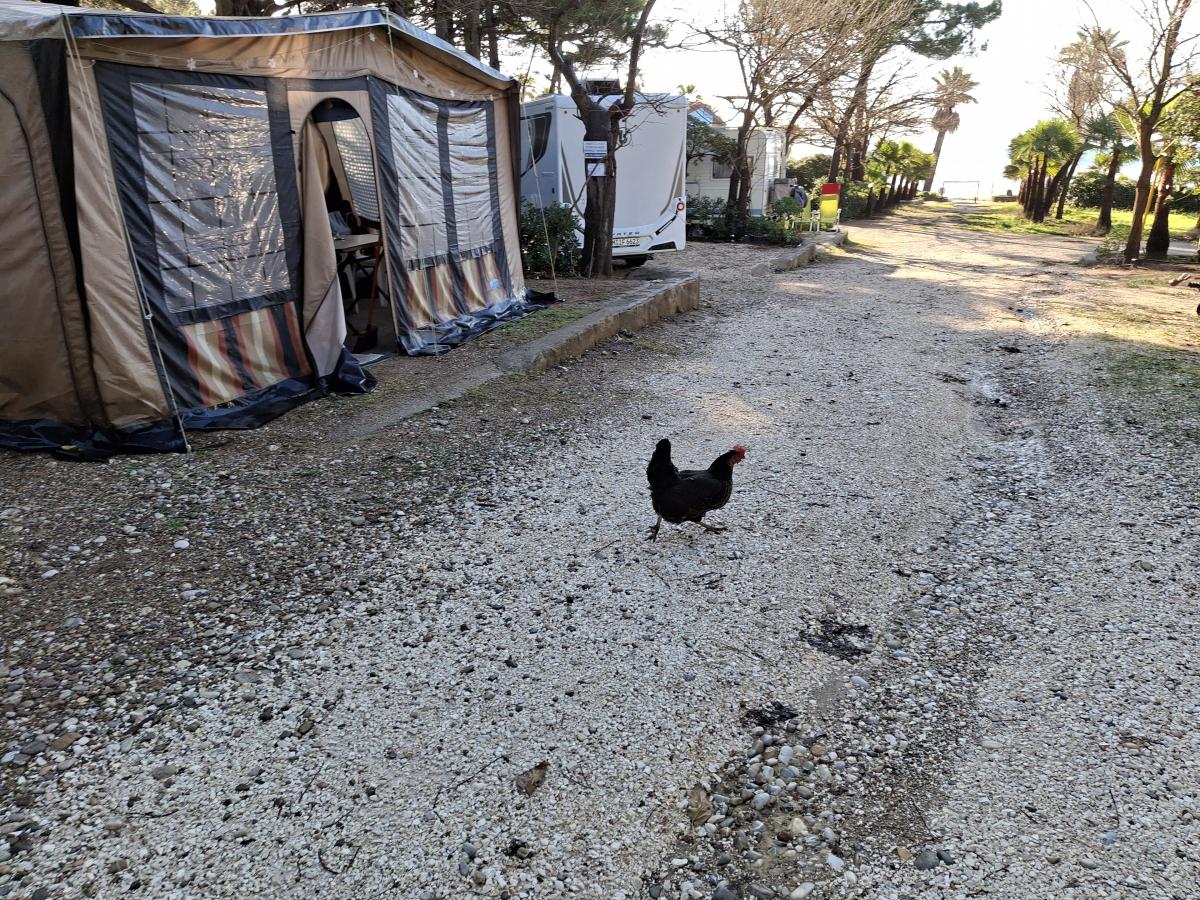 Sul mare, campeggio con ampie ed ombreggiate piazzole, carico/scarico, corrente elettrica, servizi igienici, docce calde, bar-ristorante, minimarket, lavapiatti, lavandino lavaggio biancheria, aree gioco.