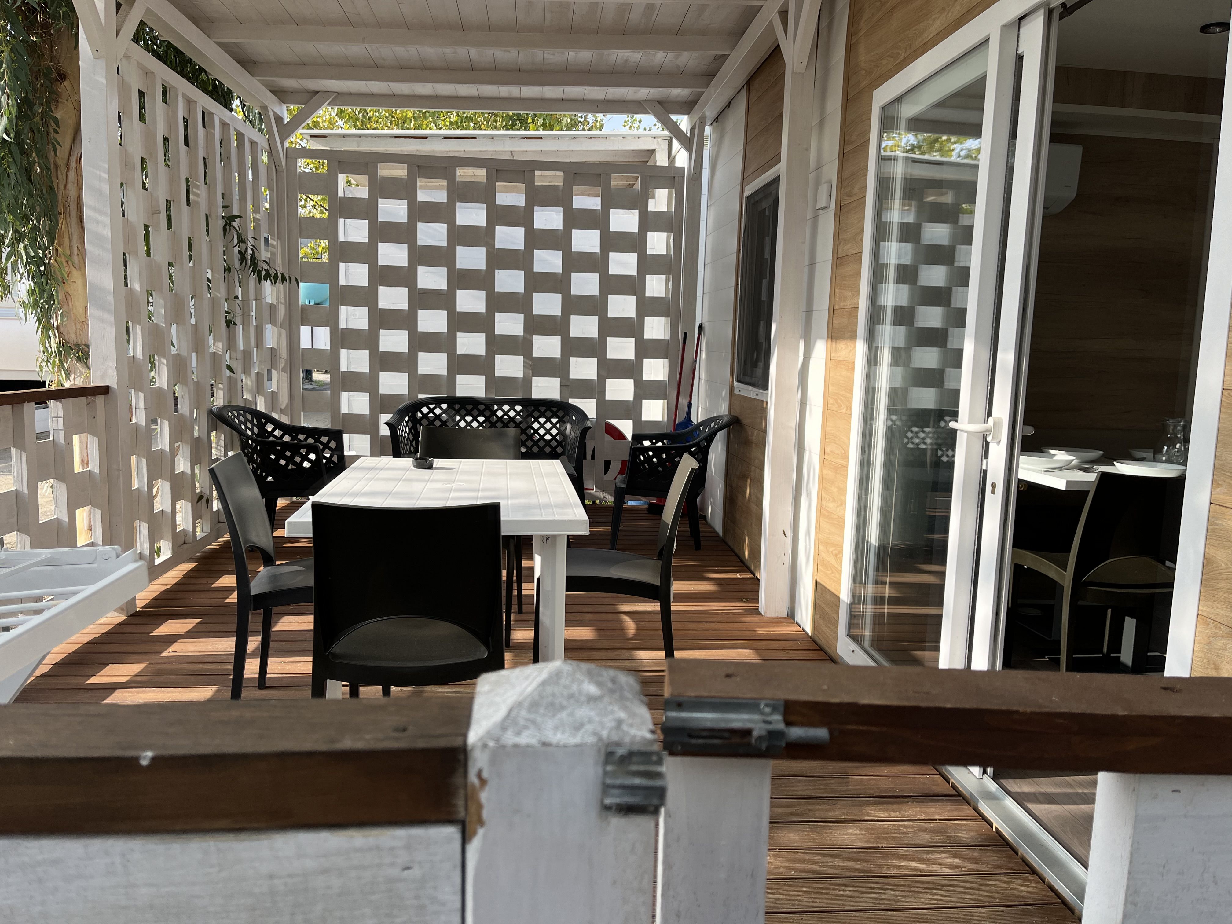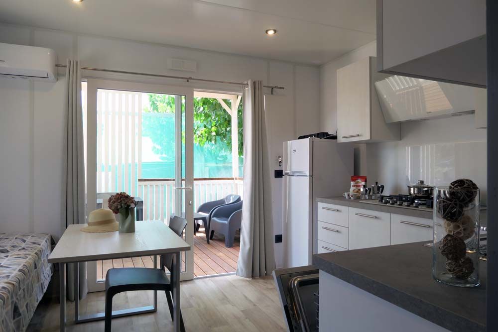 Sistemazioni e piazzole Il Camping Adriatico offre diverse soluzioni di soggiorno per soddisfare ogni esigenza. Le case mobili, moderne e ben attrezzate, garantiscono il massimo del comfort con soluzioni fino a 6 posti letto. Ogni unità dispone di un'accogliente area living con angolo cottura attrezzato, camere spaziose e un patio privato arredato con tavolo e sedie, perfetto per godersi i pasti all'aperto. Alcune case mobili sono anche accessibili per persone con difficoltà motorie.