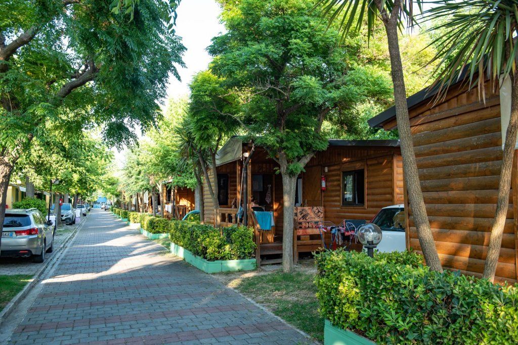 La struttura offre diverse sistemazioni: bungalow, case mobili, villini e camere in formula hotel. Tutti gli alloggi con cucina sono dotati di bagno privato, veranda coperta, frigorifero e stoviglie, e includono posto auto, accesso alle piscine, servizio spiaggia e animazione. Sono disponibili trilocali, bilocali, case mobili di varie tipologie e camere con aria condizionata e TV. Per chi viaggia in tenda, camper o caravan ci sono piazzole ombreggiate di diverse dimensioni, con elettricità e, in alcune, anche acqua e scarico.